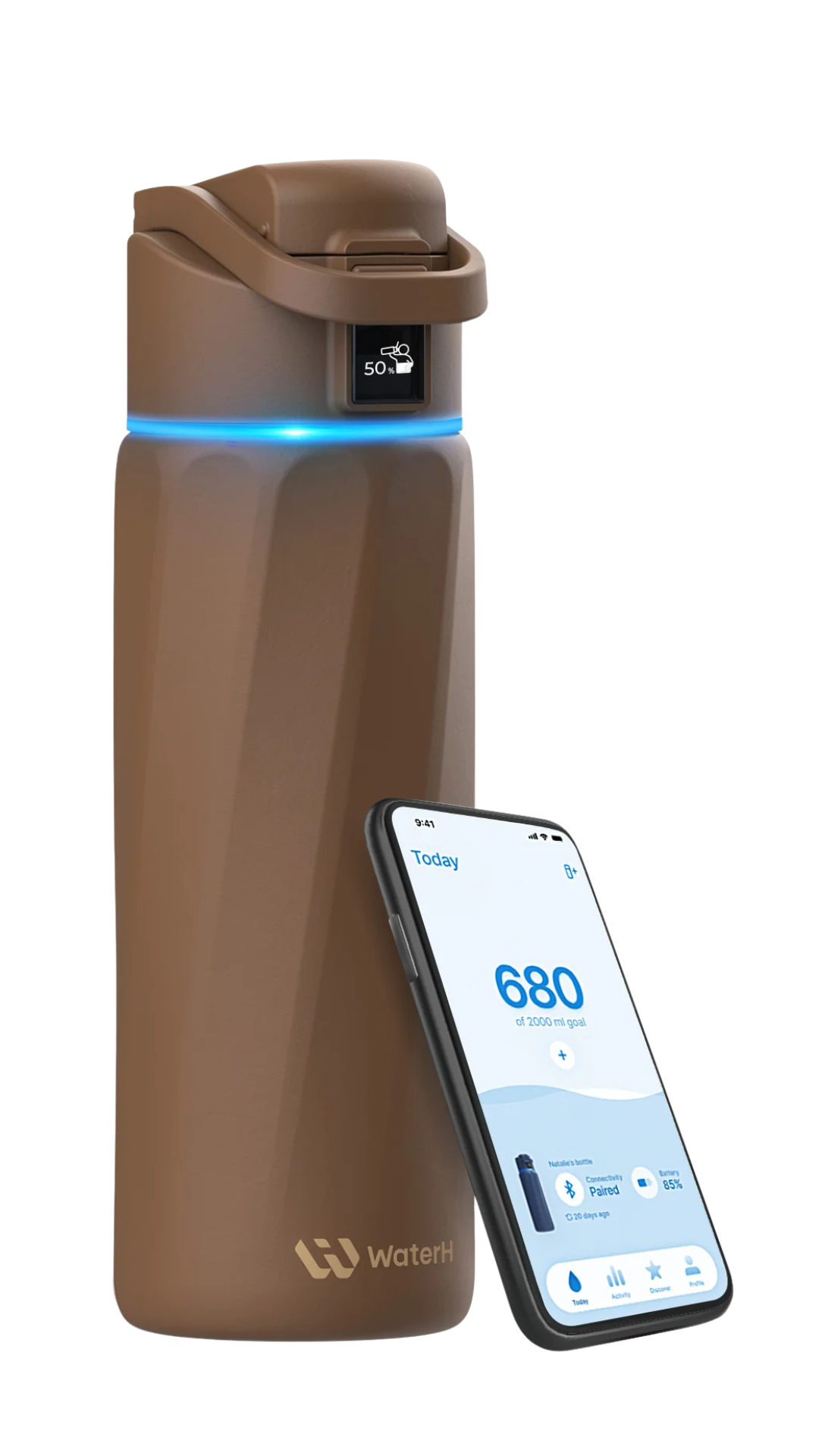 1 Botella inteligente Water H Boost (24oz – color café)